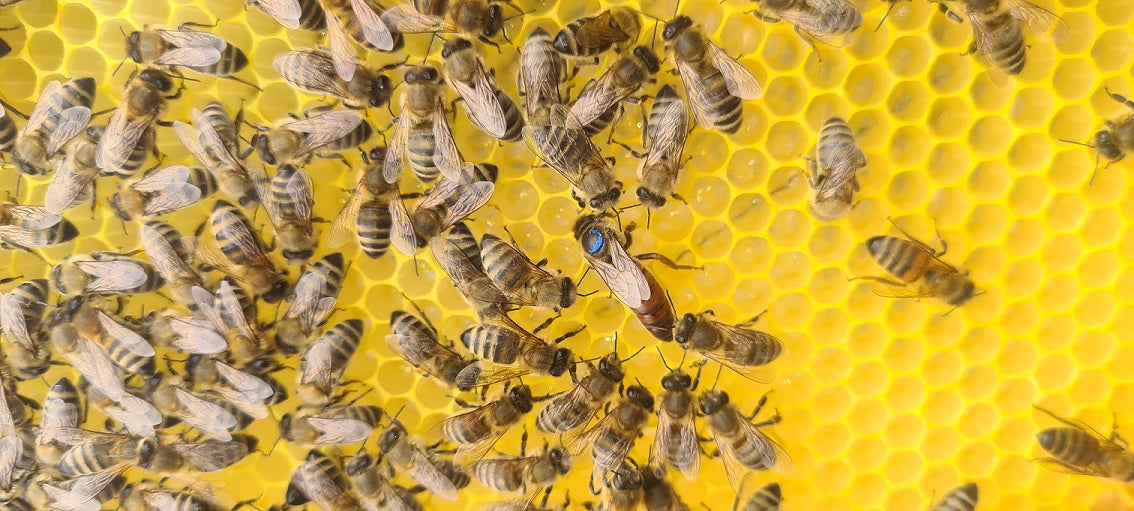 Eine Bienenkönigin lebt ca. 3-5 Jahre. Wenn sie zu alt wird, entscheidet ihr Volk, sich eine neue Bienenkönigin zu ziehen, indem sie eine Larve mit einem speziellen Futtersaft - dem Gelee Royal ernährt.
